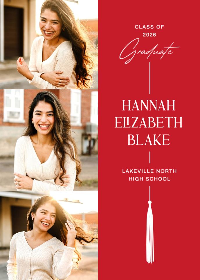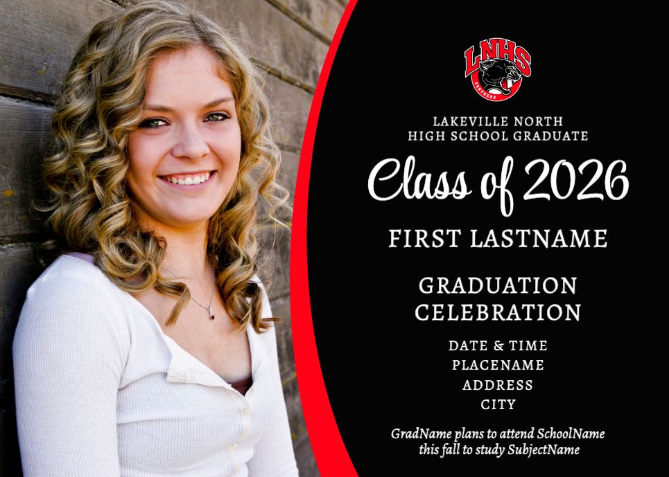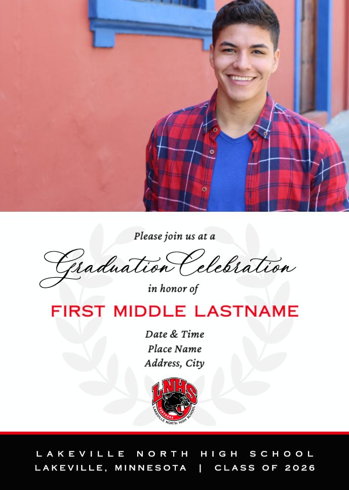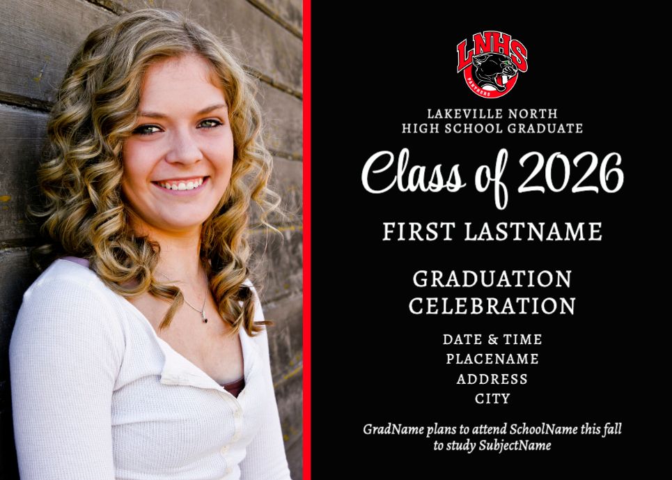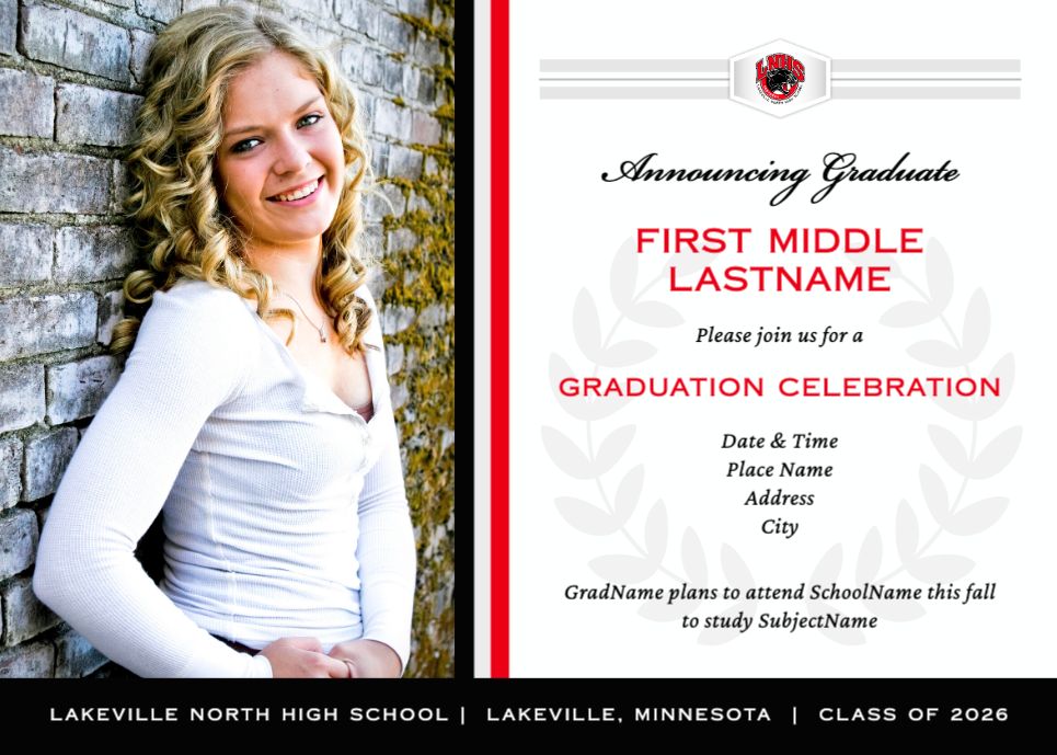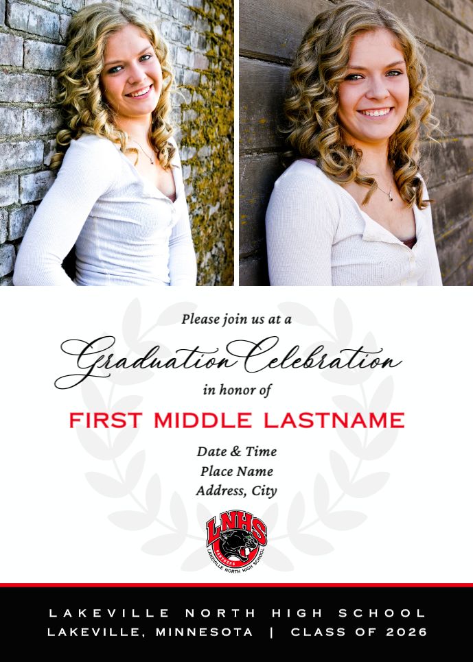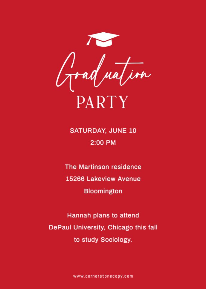 Graduation Invitation & Announcement design templates are printed 5 x 7 inches and include two-sided printing on your choice of card stock. Options to add rounded corners and matching envelopes available during checkout.