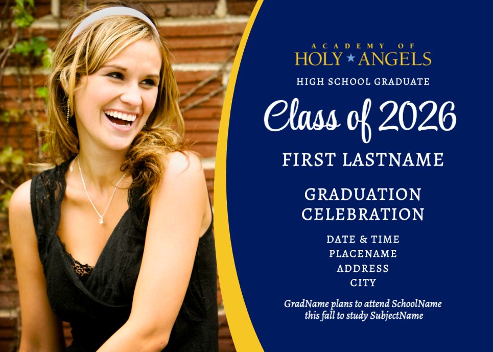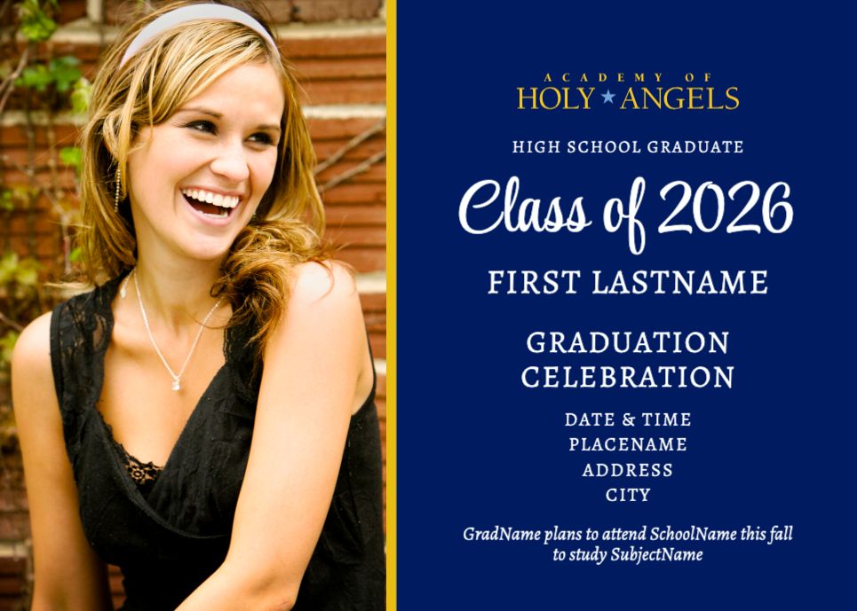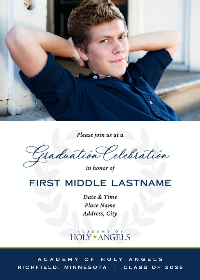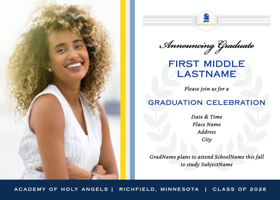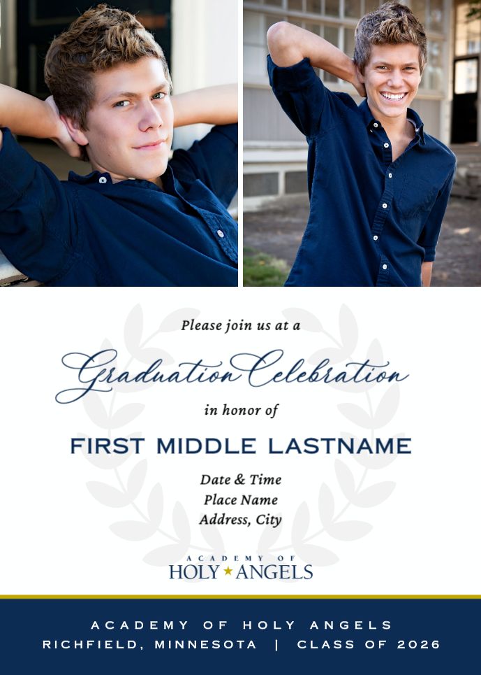 Graduation Invitation & Announcement design templates are printed 5 x 7 inches and include two-sided printing on your choice of card stock. Options to add rounded corners and matching envelopes available during checkout.