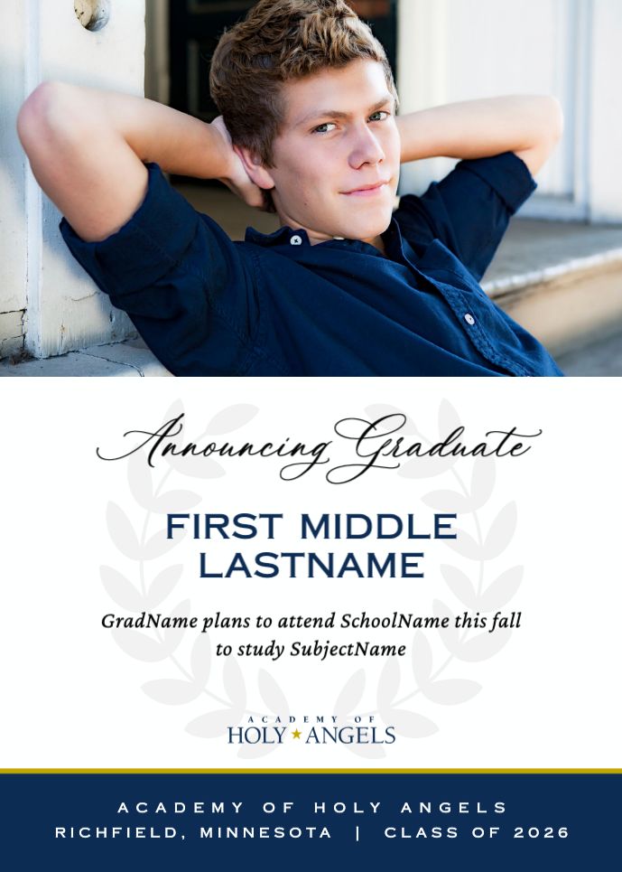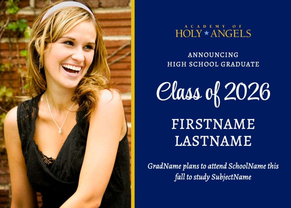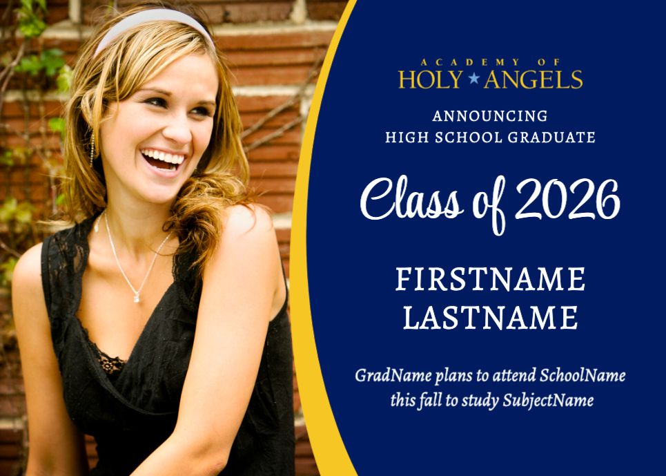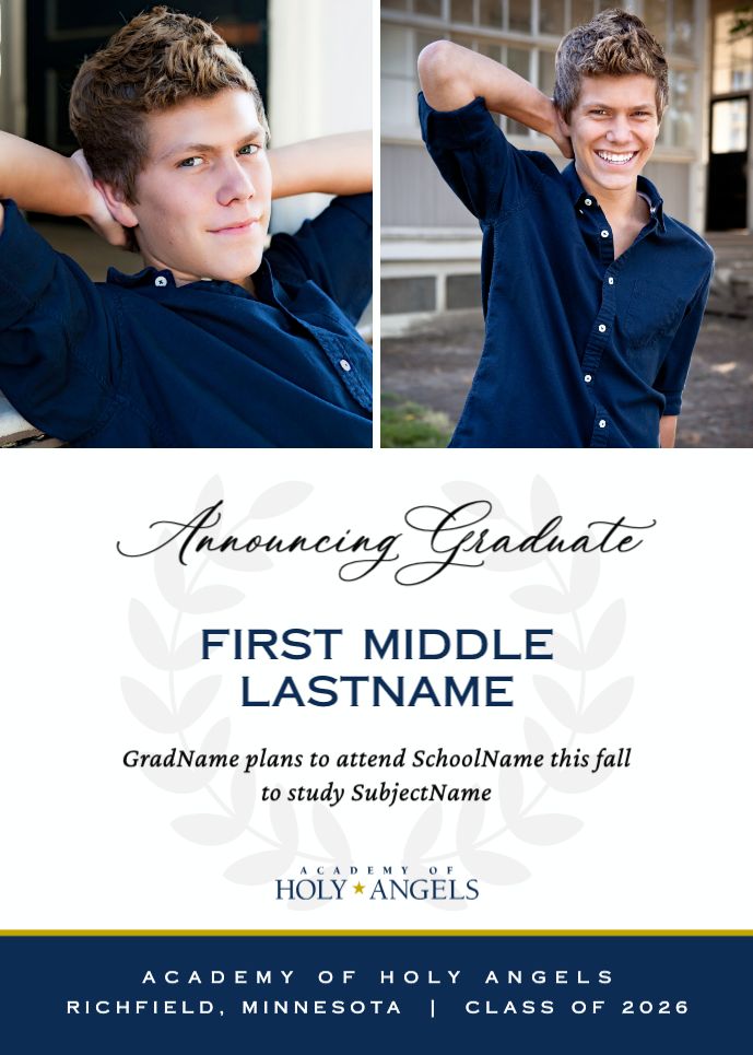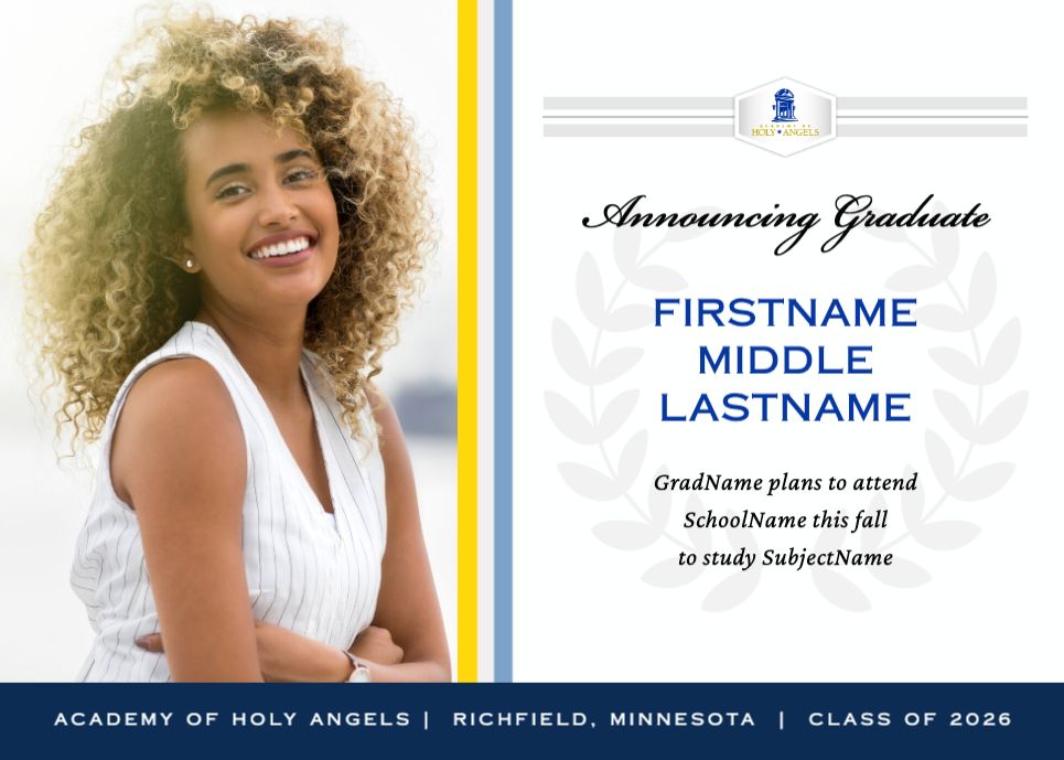 Graduation Invitation & Announcement design templates are printed 5 x 7 inches and include two-sided printing on your choice of card stock. Options to add rounded corners and matching envelopes available during checkout.