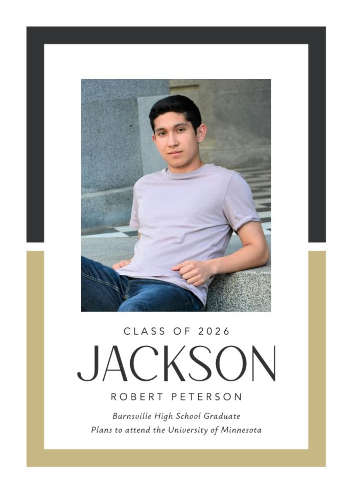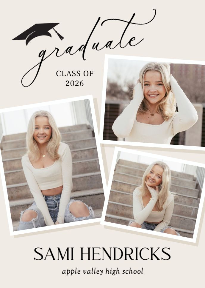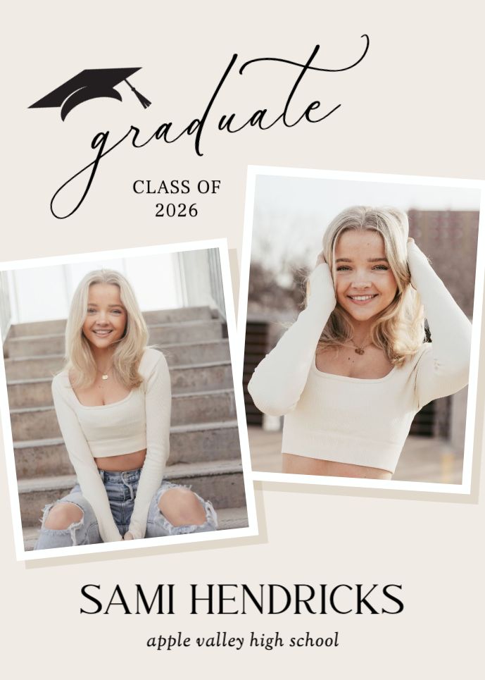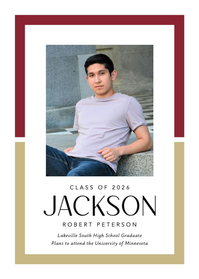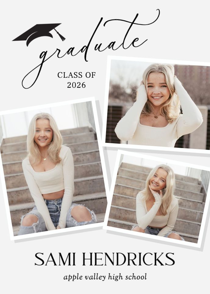 Graduation invitations & Announcement designs are printed 5 x 7 inches and include two-sided printing on your choice of card stock. Options to add rounded corners and matching envelopes available during checkout. Shaped, die-cut card designs also available, plus more sizes available when providing your own artwork, or when creating a design in the Cornerstone online designer. For full product information and pricing, click here.