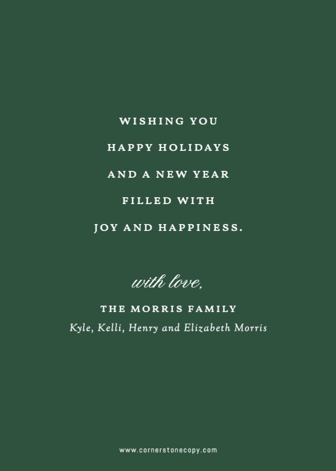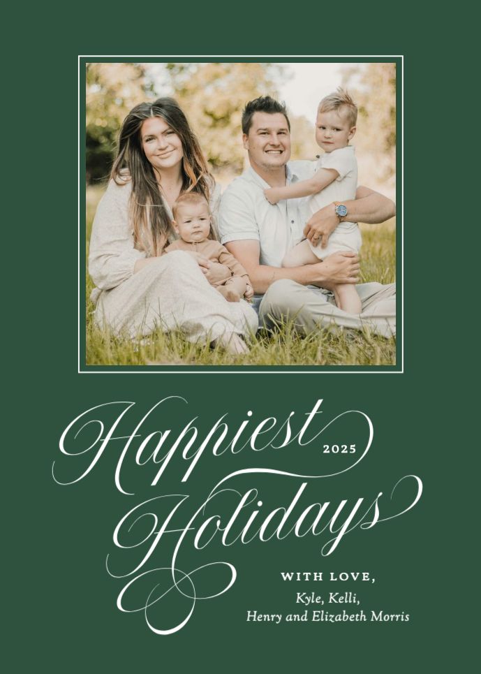 Standard cards are sized at 5x7. Shaped, die-cut cards designed to fit in standard A7 size envelope except Christmas Tree (5.3 x 8.2 inches)* which fits in A9 envelope. For full product information, click here.