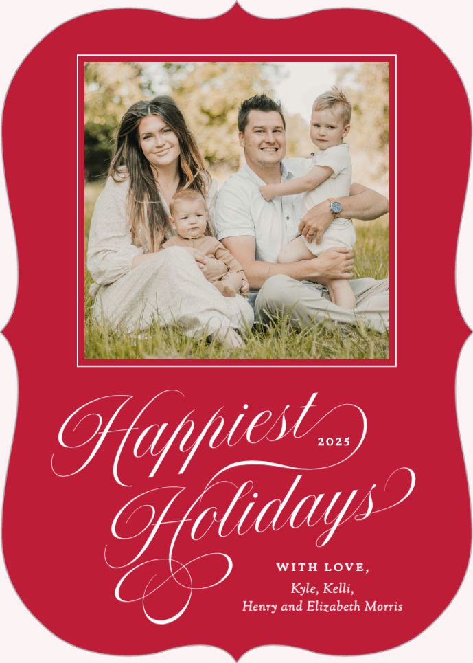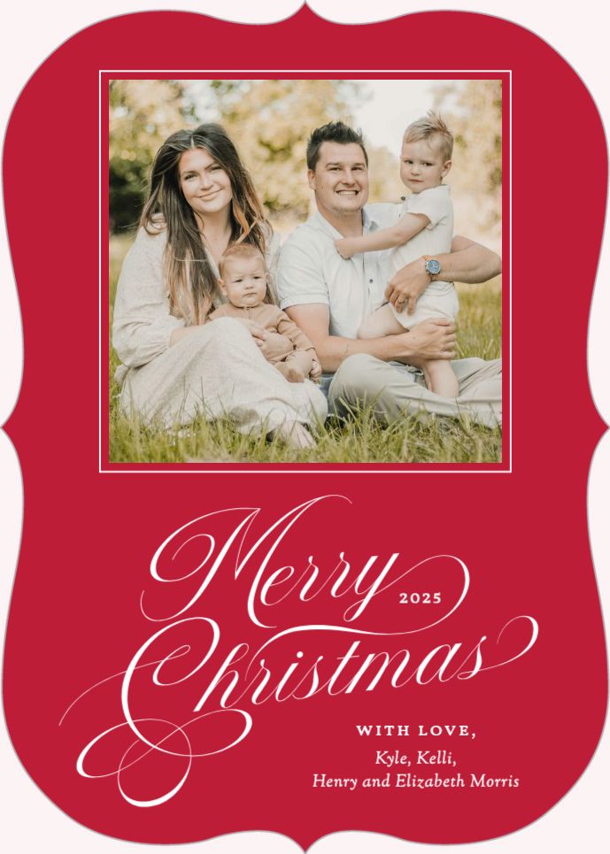 Standard cards are sized at 5x7. Shaped, die-cut cards designed to fit in standard A7 size envelope except Christmas Tree (5.3 x 8.2 inches)* which fits in A9 envelope. For full product information, click here.