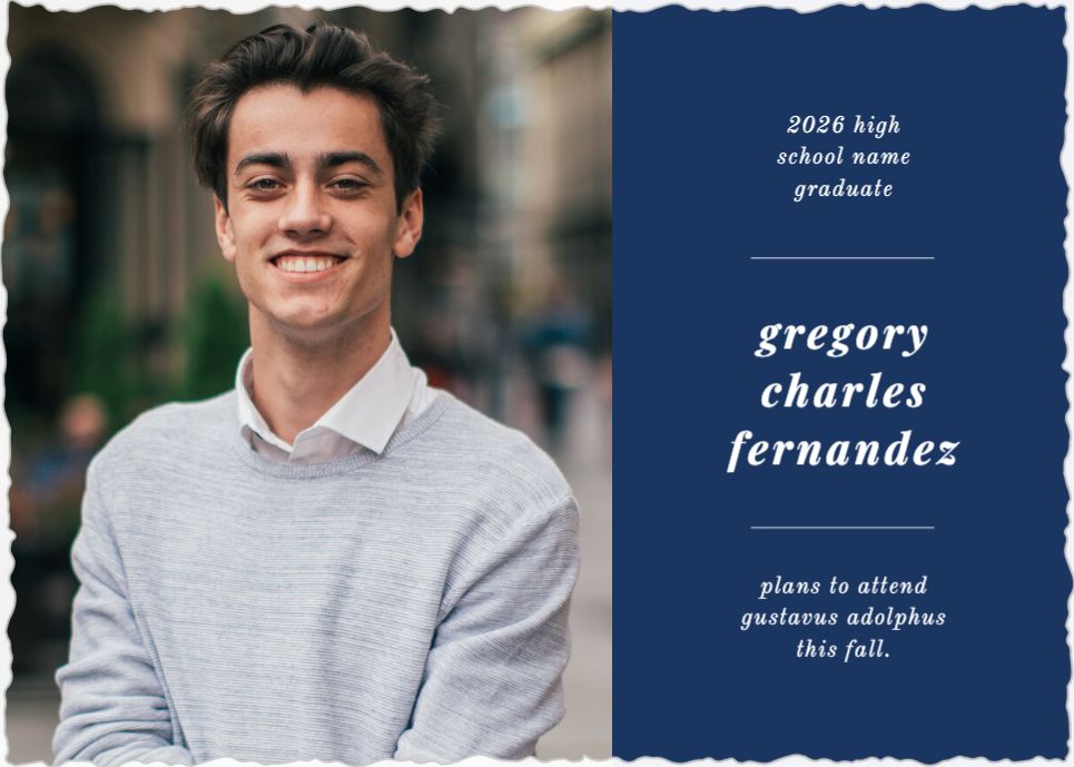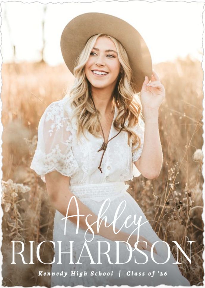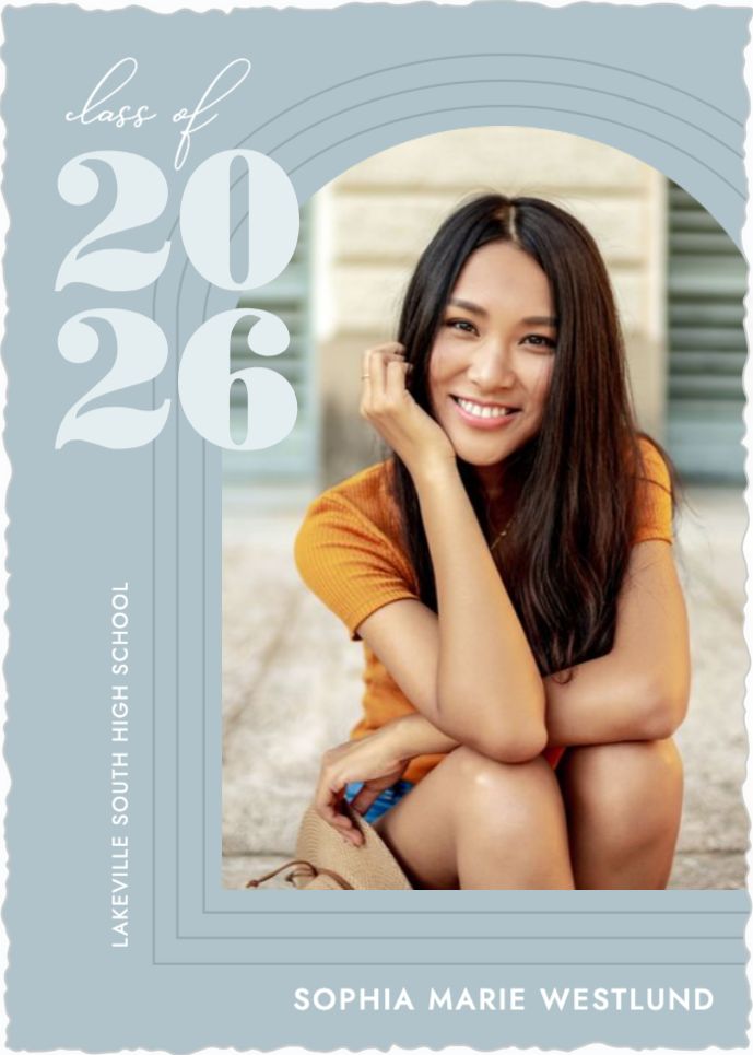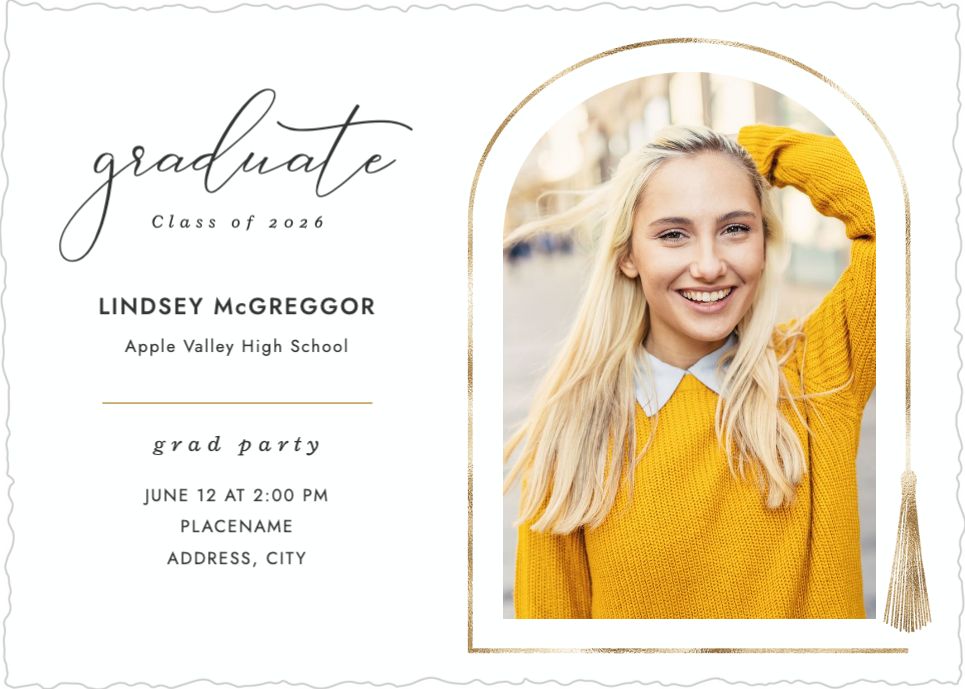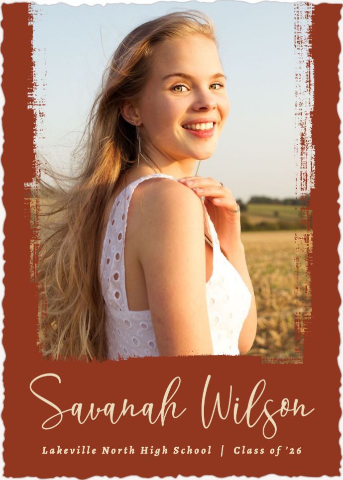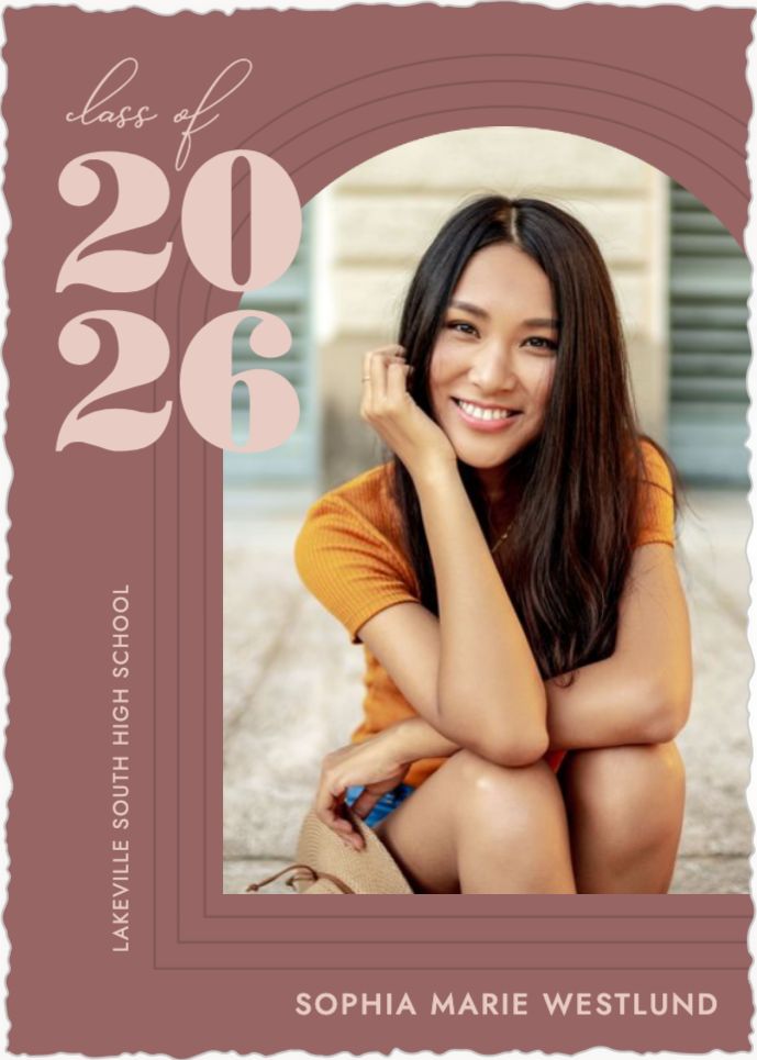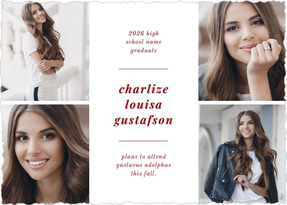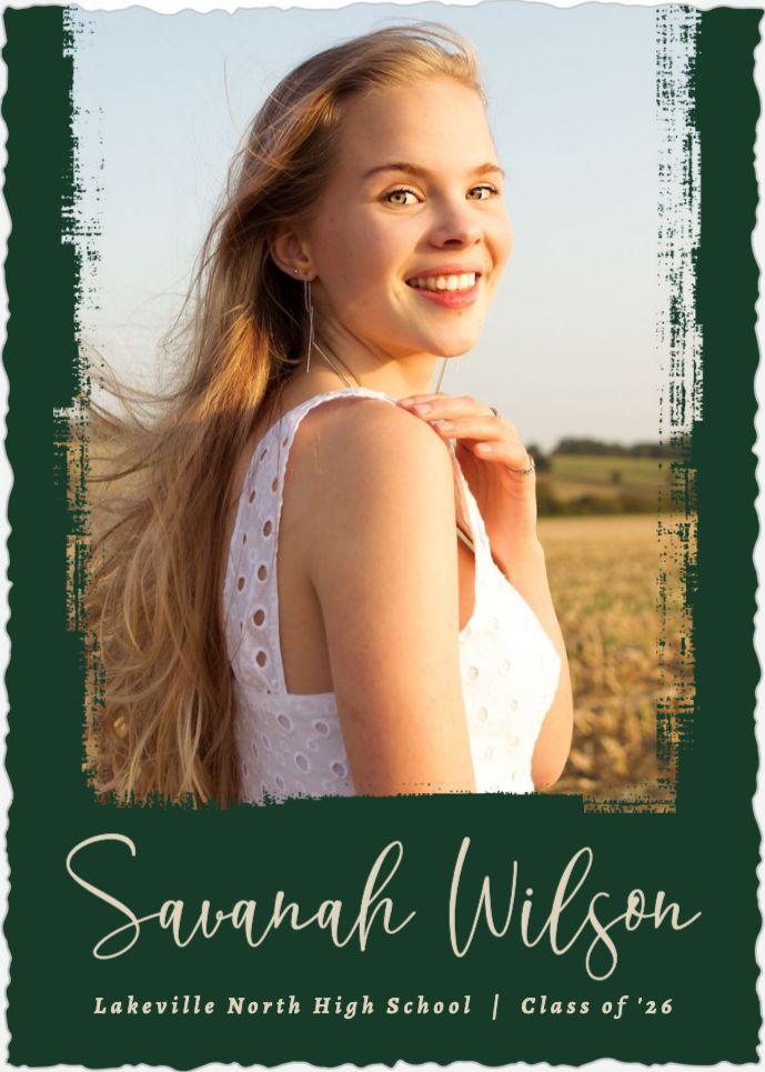 Graduation invitations & Announcement designs are printed 5 x 7 inches and include two-sided printing on your choice of card stock. Options to add rounded corners and matching envelopes available during checkout. Shaped, die-cut card designs also available, plus more sizes available when providing your own artwork, or when creating a design in the Cornerstone online designer. For full product information and pricing, click here.
