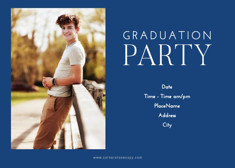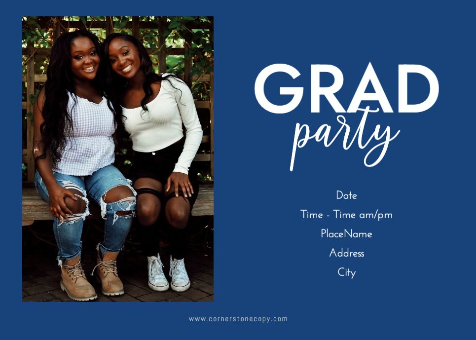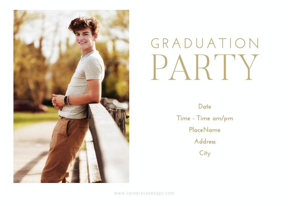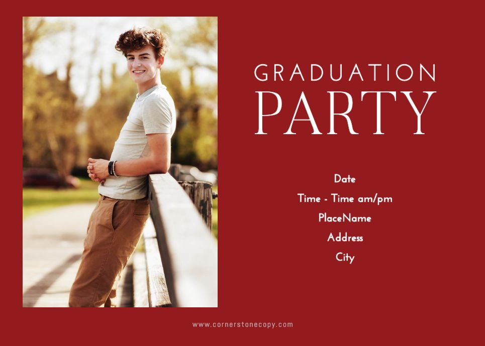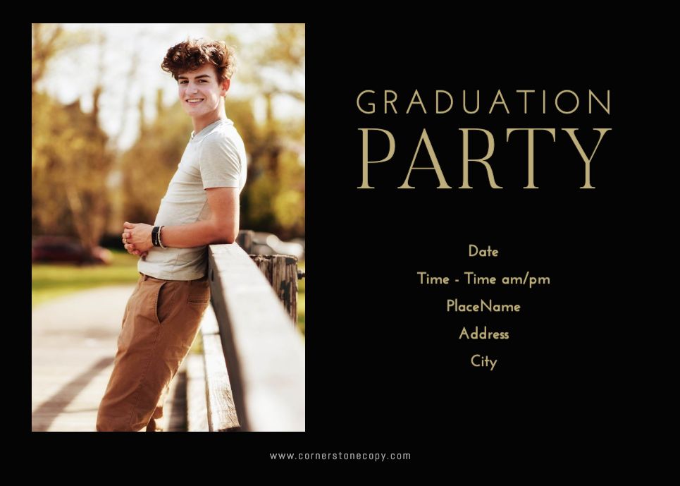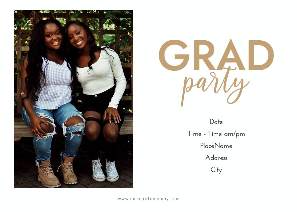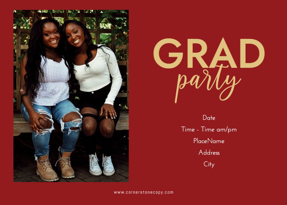 Graduation Invitation & Announcement design templates are printed 5 x 7 inches and include two-sided printing on your choice of card stock. Options to add rounded corners and matching envelopes available during checkout.