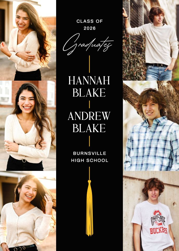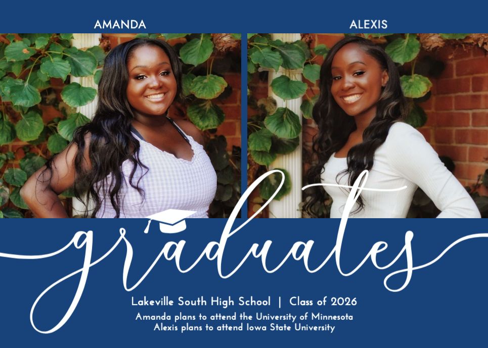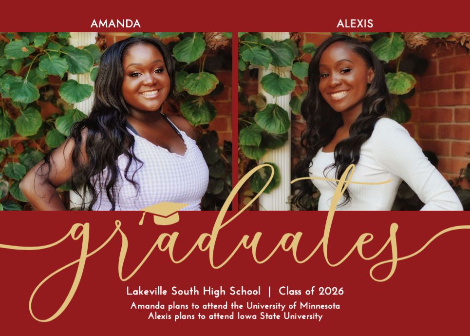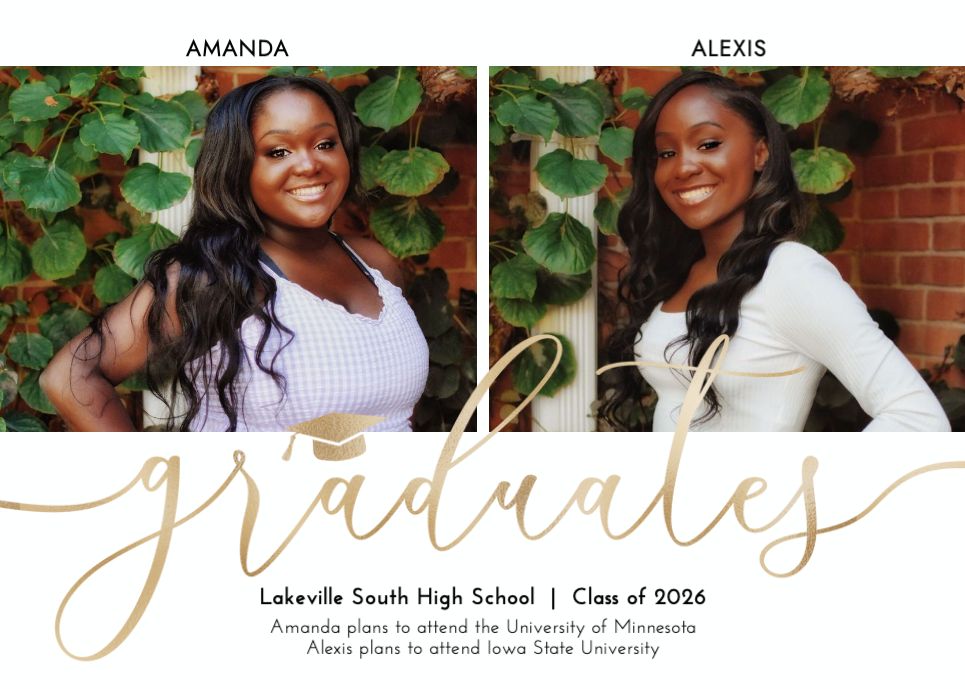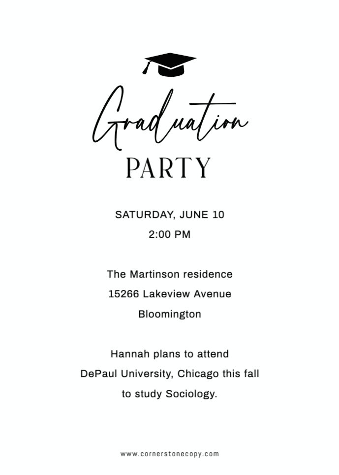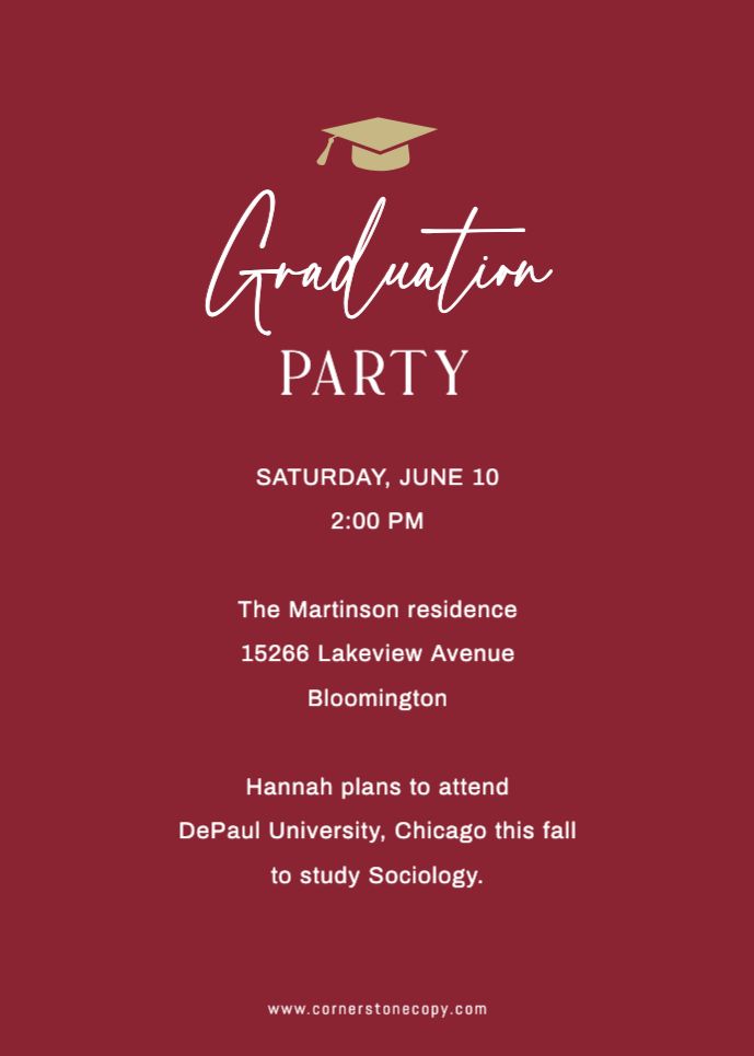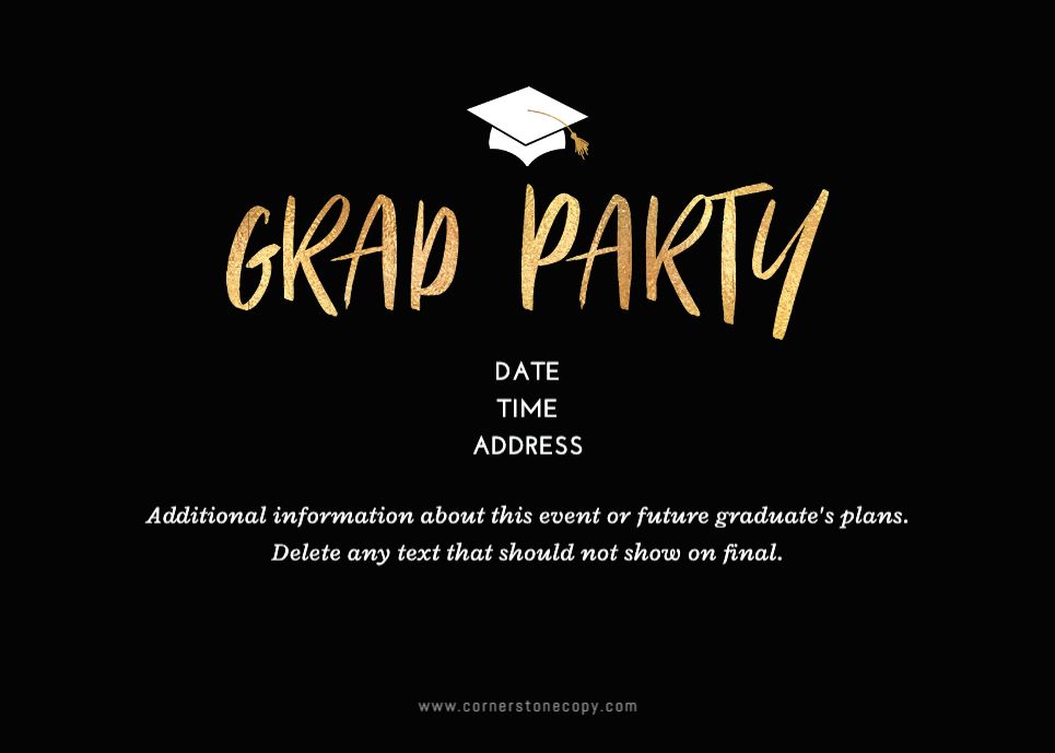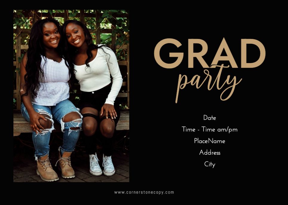 Graduation Invitation & Announcement design templates are printed 5 x 7 inches and include two-sided printing on your choice of card stock. Options to add rounded corners and matching envelopes available during checkout.