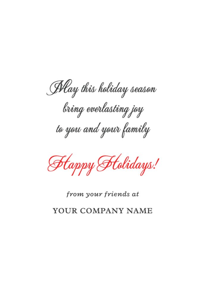 Holiday Photo Cards are flat cards printed at 5 x 7 inches and include two-sided printing on your choice of card stock. Options to add rounded corners and matching envelopes available during checkout. Shaped, die-cut cards also available, including Arch, Deckle Edge, Scalloped, Notched Corners and Christmas Tree shapes. For full product information, click here.